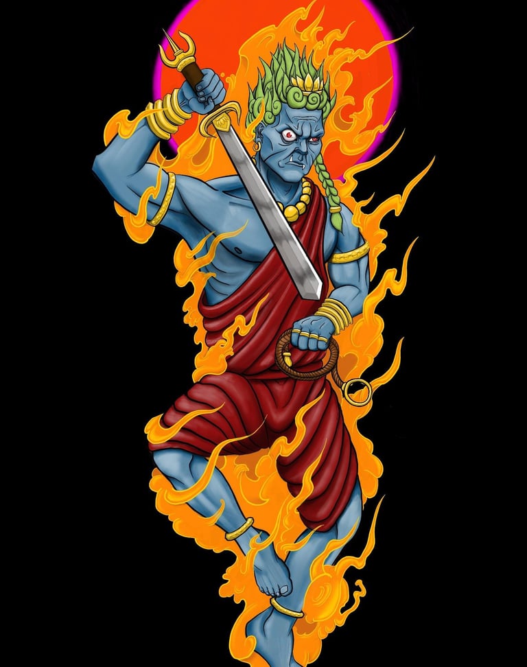 5] 炎は、逆境に負けず戦い続ける力を示し、私たちの負の業を焼き尽くします。