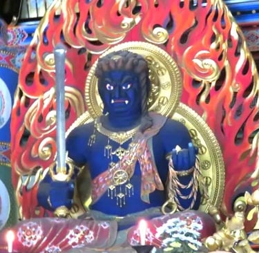全能の不動仏は、すべての仏と神の主であり指揮官として、即斎または緊急時の助けを通じて信者を守ります