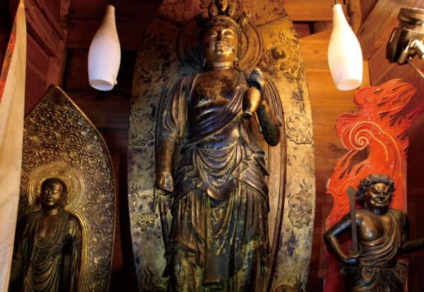 全能の不動仏は、この世で悟りを授けてくださるだけでなく、もし十分な功徳を積むことができず悟りを得られない場合、臨終の時に不動仏にすべてを託せば、阿弥陀仏の浄土、あるいは弥勒菩薩の渡世天に往生させてくださいます。観音様や地蔵様のように、全能の不動仏を心から敬う限り、宗派や宗派を問わず、すべての仏教徒にとっての仏陀です。通常は真言宗や天台宗と結び付けられますが、浄土宗、禅宗、日蓮宗の信者からも、全能の守護者、この世での悟りの授け主、そして来世での救世主という比類なき役割から、崇敬されています。